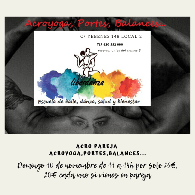 Liberdanza es un espacio donde te podras expresar libremente a través de la danza, el baile, las acrobacias y demás ramas de las artes escénicas, todo ello ayudado y asesorado por un equipo divertido de profesionales. lamanos y te asesoraremos.
