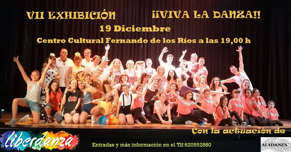 Liberdanza celebrará su VII Exhibición el 19 de diciembre a las 19,00 h en el Centro Cultural Fernando de los Ríos. Podremos disfrutar de la actuación de Aladanza