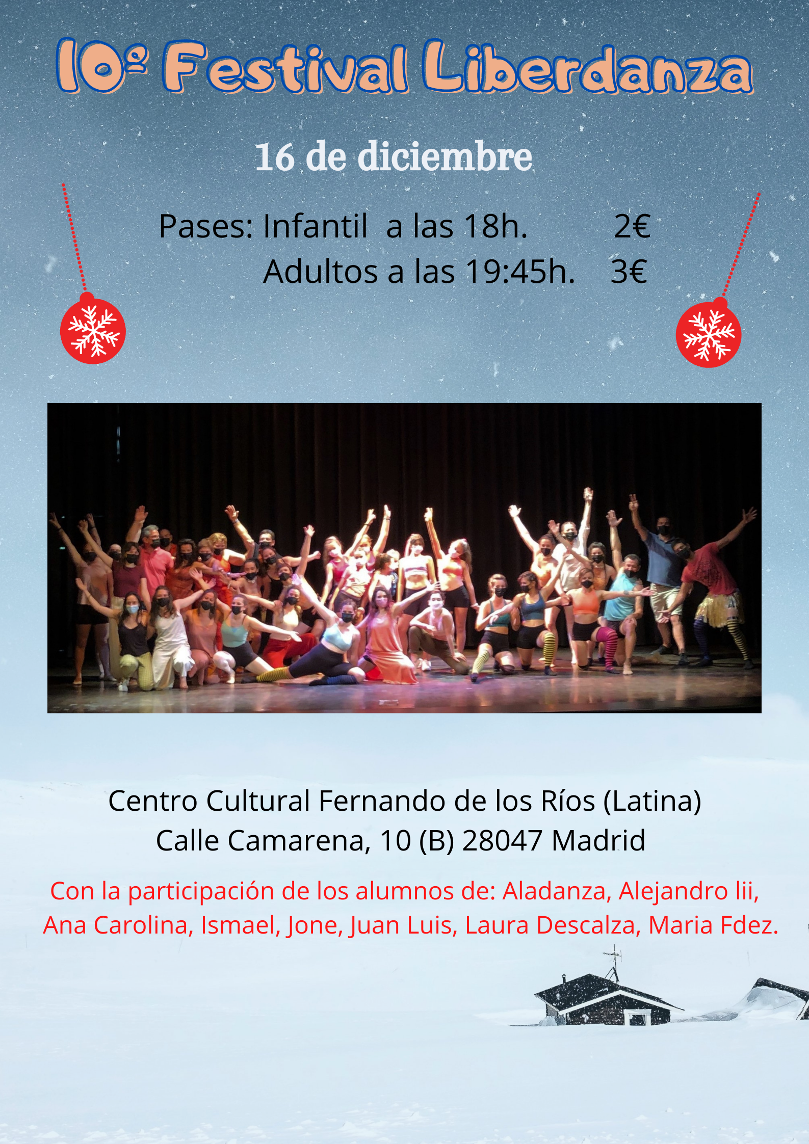 En el 10º Festival de Liberdanza tendremos dos pases: Infantil a las 18 h 2€ Adultos a las 19,45 h 3€