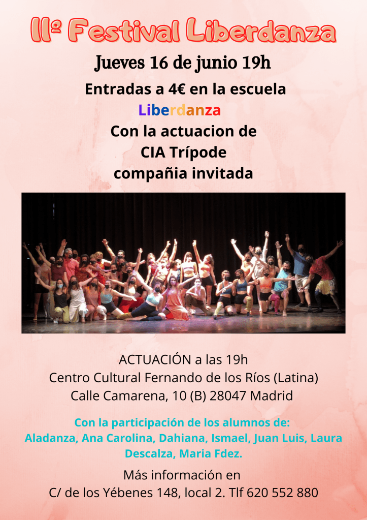 Actuación Liberdanza Jueves 16 de junio a las 19 h, con la compañia Trípode